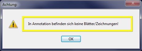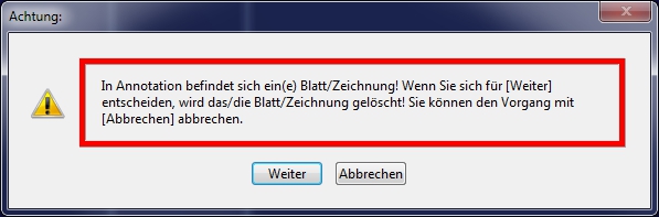 Befindet sich in Annotation ein oder mehrere Blätter, dann kommt die folgende Warnung: