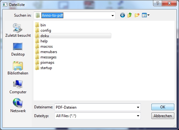 Button "Verzeichnis" anklicken und nur Verzeichs für PDF Dateien wählen und mit OK bestätigen