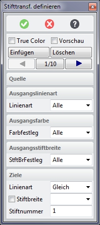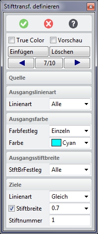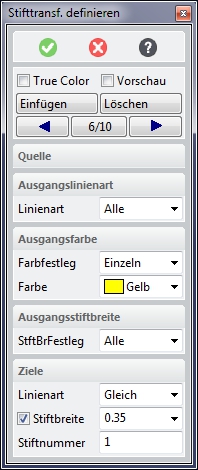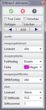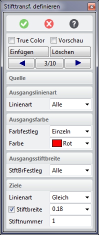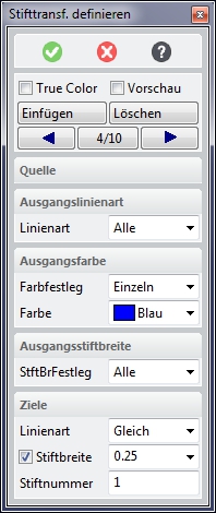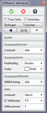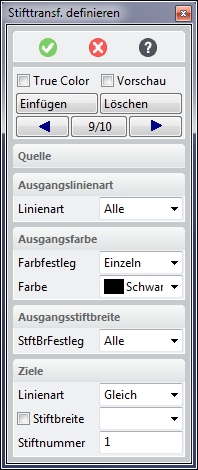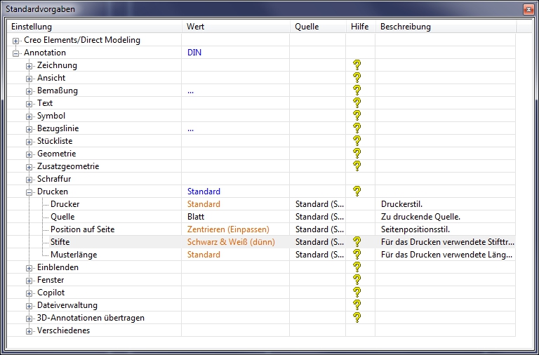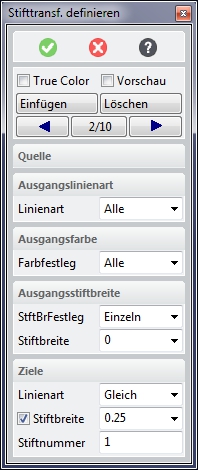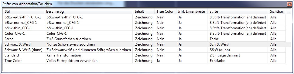 Ist nur eine Konfiguration vorhanden, empfehlt sich die standardmäßig vorhandene Transformation zu benutzen: (setq *PEN_AtP_TRANSF_STYLE* :BLACK_WHITE) Die Einstellungen können folgend überprüft oder geändert werden: Ein Doppelklick in der Spalte "Stifte" und Zeile "Schwarz & Weiß (dünn)":