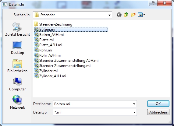 Button "Verzeichnis" anklicken und nur eine beliebige MI Datei in einem Verzeichs wählen und mit OK bestätigen