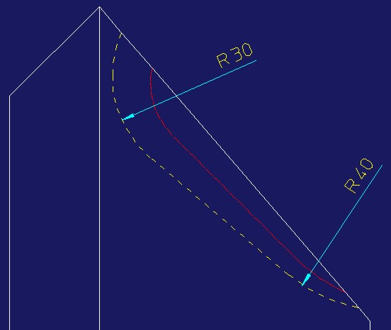 Modeling Zahnrad 1 mit Auslauf hinten R=40 und vorne R=30