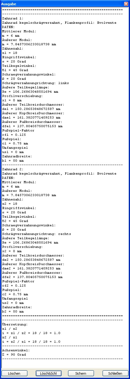 weiteren Werte wie Achsabstand, Übersetzung, Wälzkreisdurchmesser, Achsenwinkel (Kegelräder) durchgeführt.