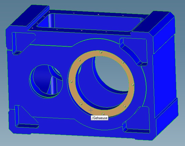 Sobald in der Konfiguration eingestellt, werden auch "Machining" wie sonstige Flächen sowie Gewindeflächen anders gefärbt.