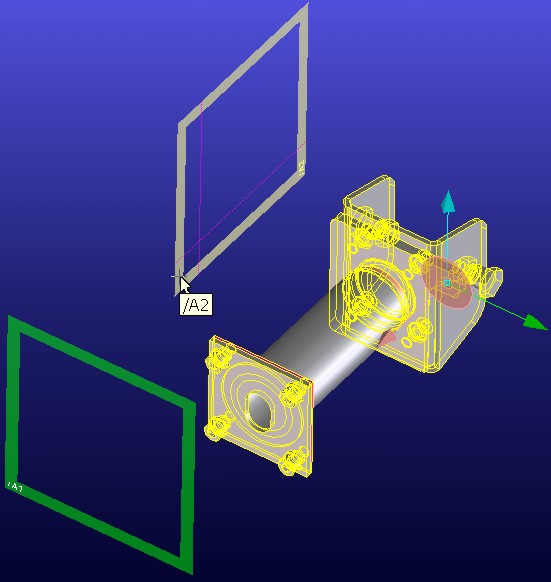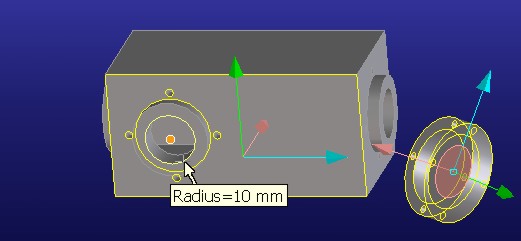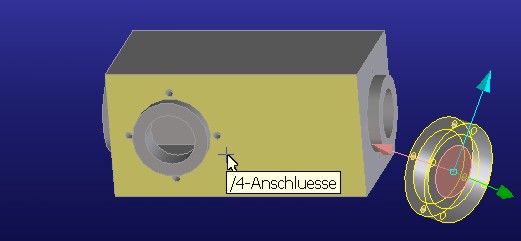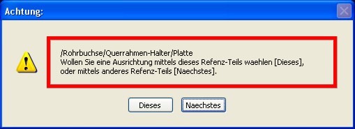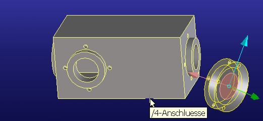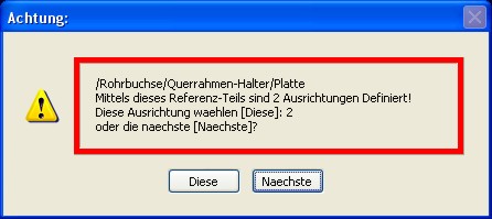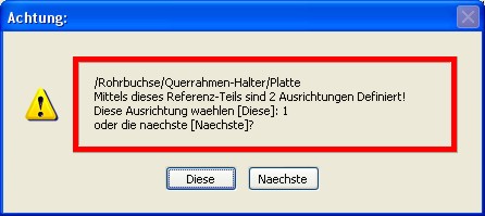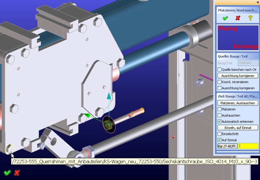 Mittels dieses Dialoges "Platzieren/Austauschen" können Teile und Baugruppen, deren Ausrichtung definiert ist, platziert oder ausgetauscht werden Die Ausrichtung der Teile und Baugruppen, außer "Norm- und Zuliefer-Elemente", wird mit dem Dialog "Position definieren" festgelegt. Die Ausrichtung von "Norm- und Zuliefer-Elementen" ist fest definiert und wird von dem Modul "Placing or exchange" automatisch erkannt. Zu den "Norm- und Zuliefer-Elementen" gehören folgende Bibliotheken: Cadenas PARTsolutions und Manage (Native Check-in) CoCreate SolidLibrary und Part Library Klietsch PARTsolutions Techsoft SolidPower Dazu können noch bis zu 5 eigene Bibliotheken definiert werden. Einzelheiten sind in der folgenden Dateien beschrieben: "config-alignment.htm" und "customer-library-definition.lsp".
