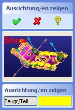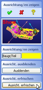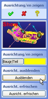 Eine bestimmte Ausrichtung kann in einem Dialog ausgewählt werden. Die Ausrichtung bleibt so lange sichtbar bis sie mittels des Buttons "Ausblenden" entfernt wird. Die Größe der Ausrichtungsdarstellung ist mittels des Buttons "Ausricht. erfrischen" anpassbar.