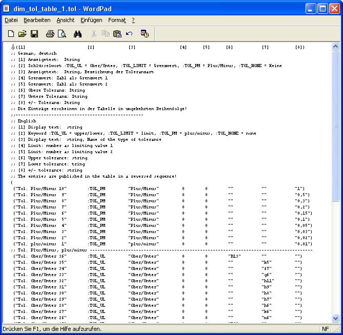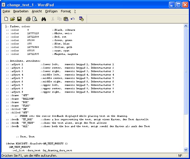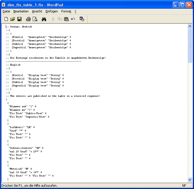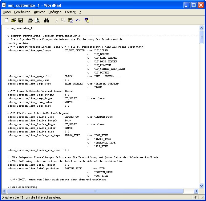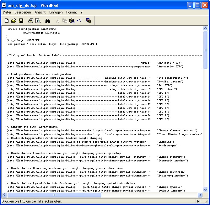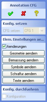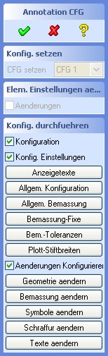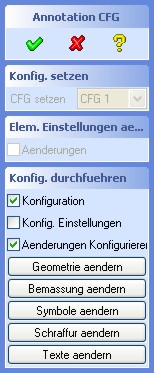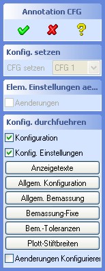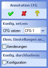 Alle Anzeige-Texte sowie die Konfigurationen können über diesen Dialog definiert werden. Nach dem Betätigen eines des Buttons öffnet sich im WordPad die entsprechende Konfigurationsdatei, die der jeweiligen Konfiguration (in diesem Fall: "CFG 1") zugeordnet ist. Alle Konfigurationsdateien können nach dem Speichern über die Auswahl-Box geladen werden und sind mit Ausnahme der Anzeigetexte sofort wirksam. Die Änderungen der Anzeigetexte sind erst nach dem Beginn einer neuen Annotation Sitzung wirksam und sichtbar.